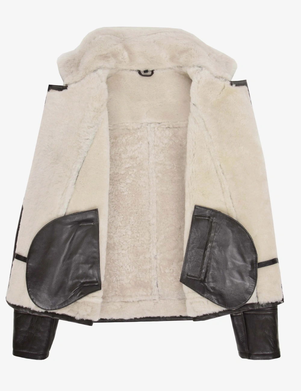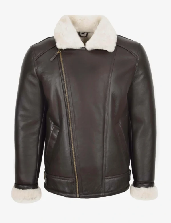 Aviator Cross Zip Shearling Mens Leather Jacket