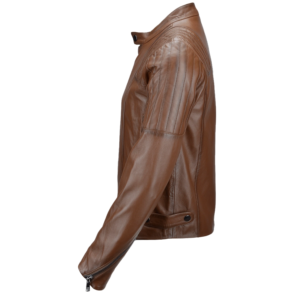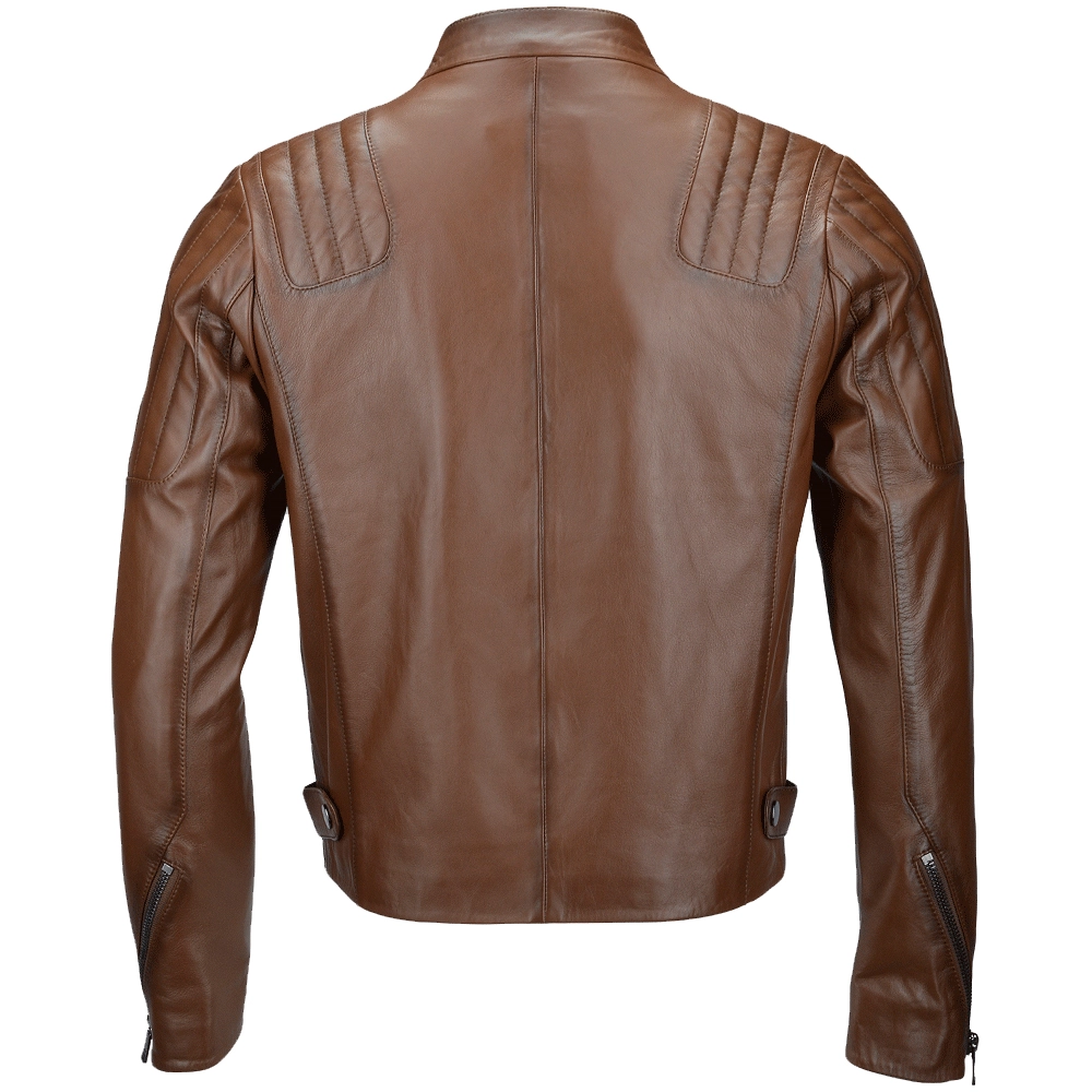 Men Camel Ribbed Leather Motorcycle Jacket