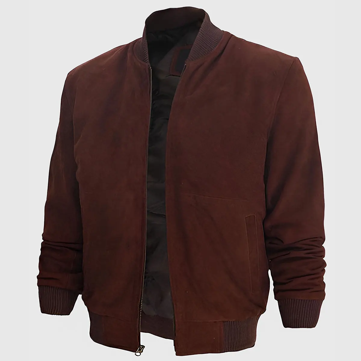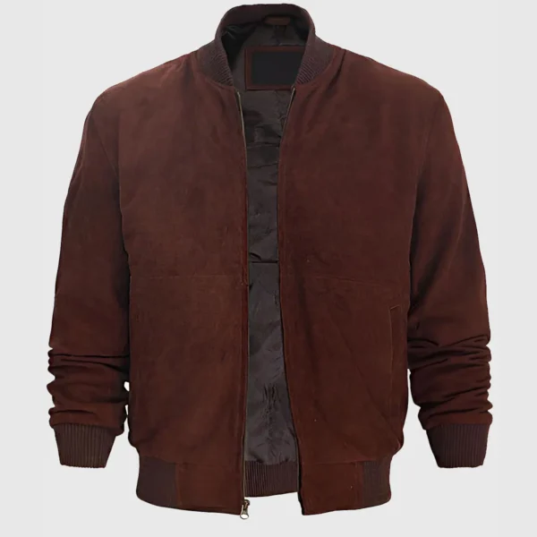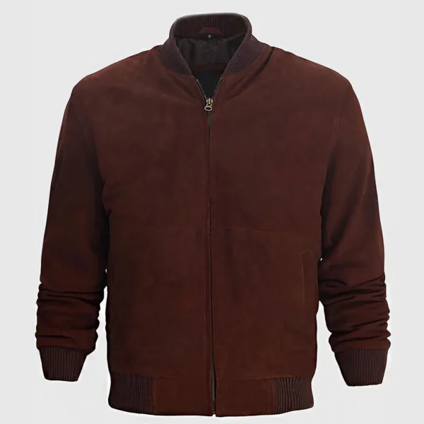 Men Dark Brown Bomber Suede Jacket