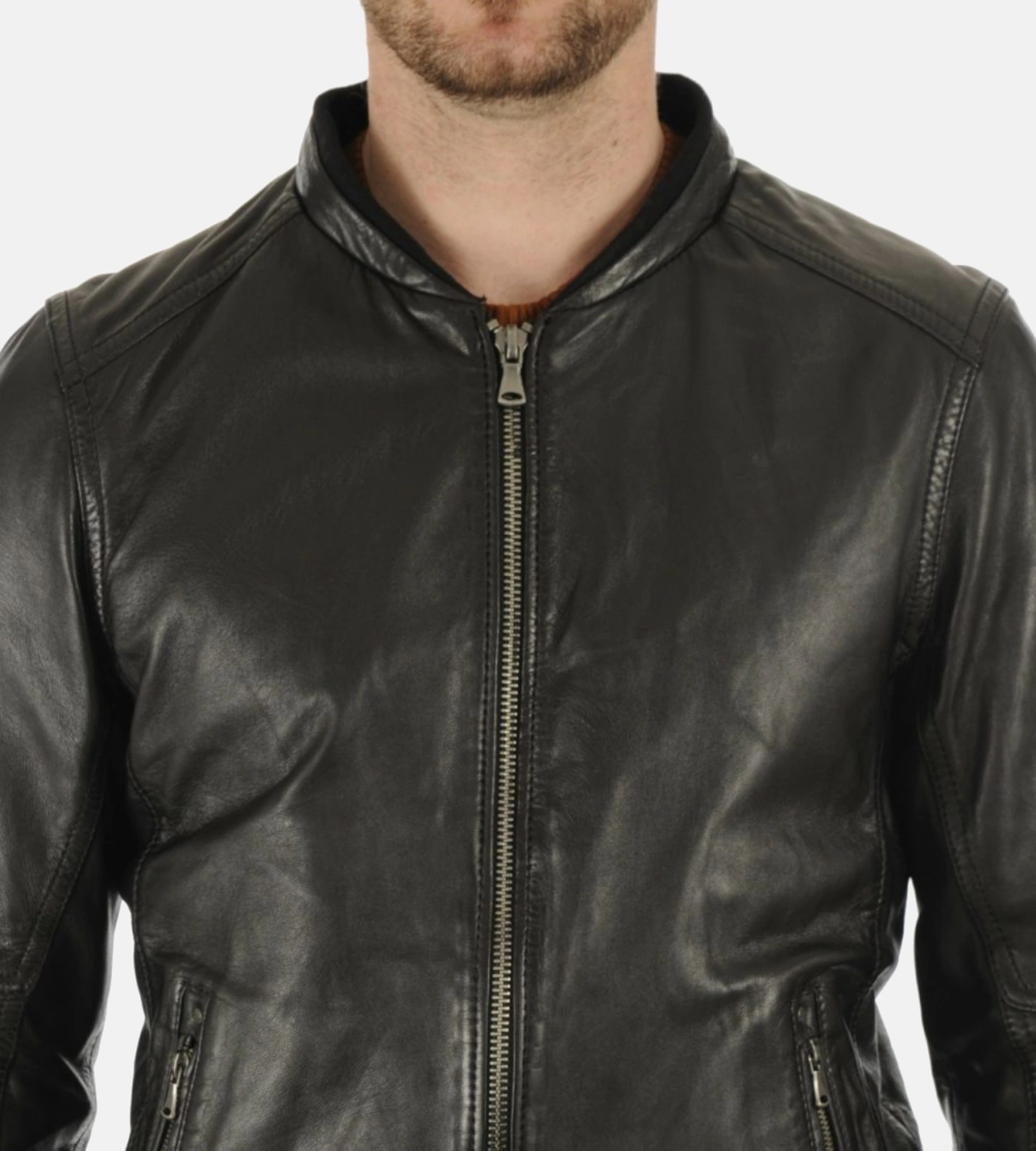 Classic Lambskin Leather Black Jimmy Men Hooded Jacket