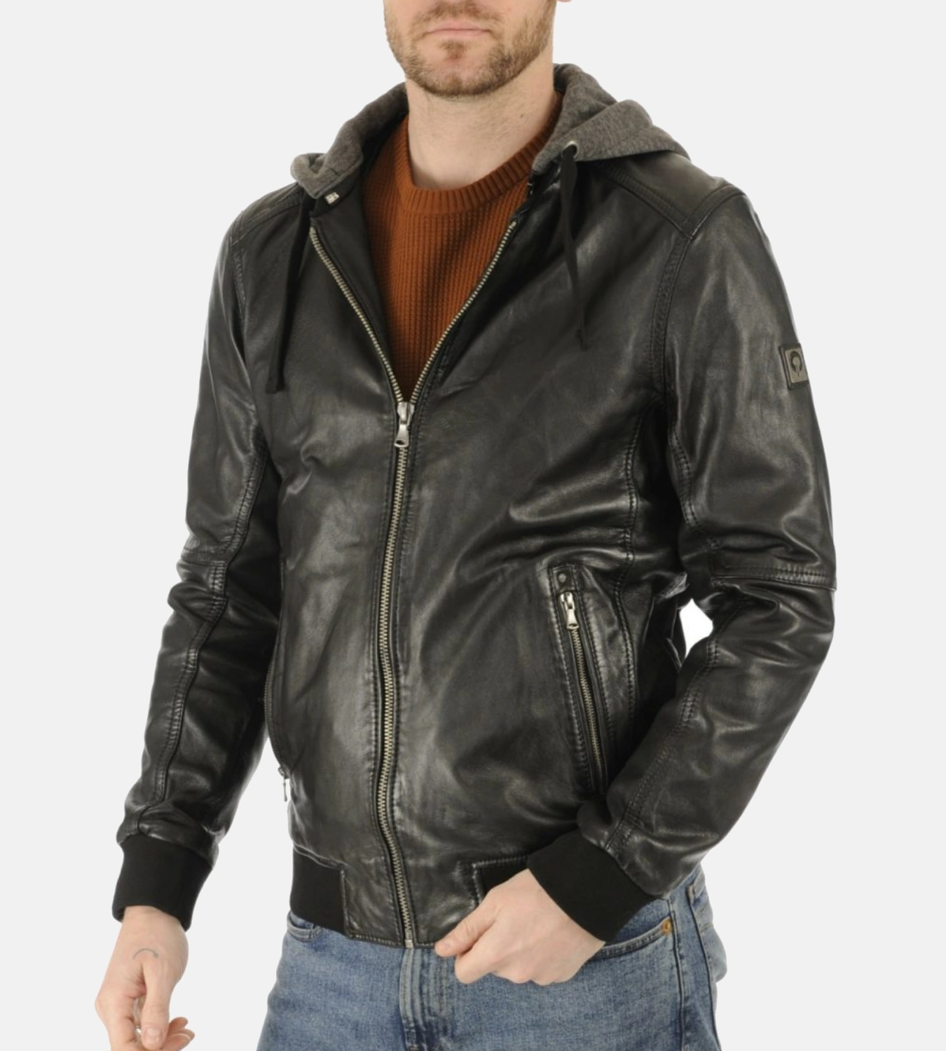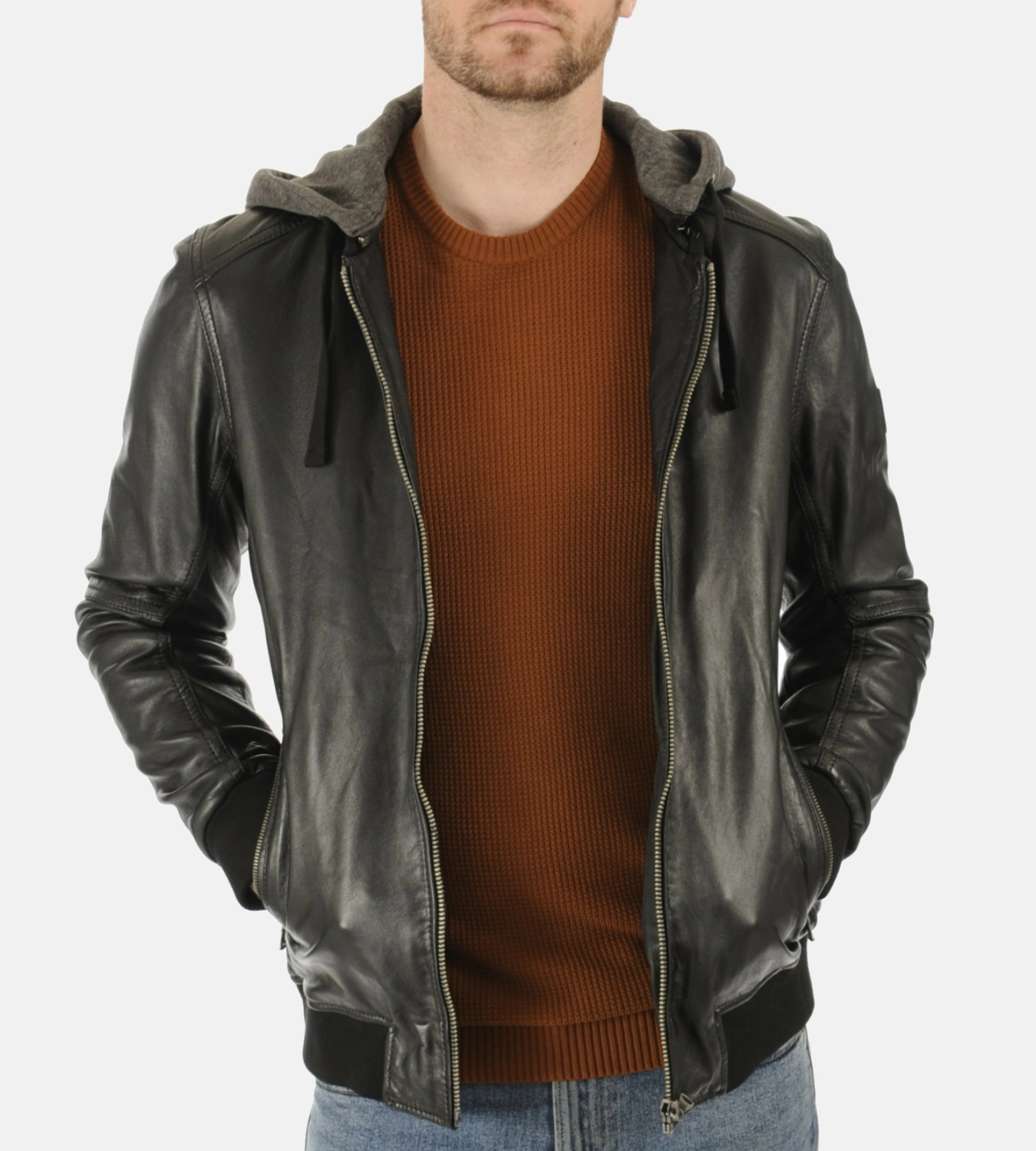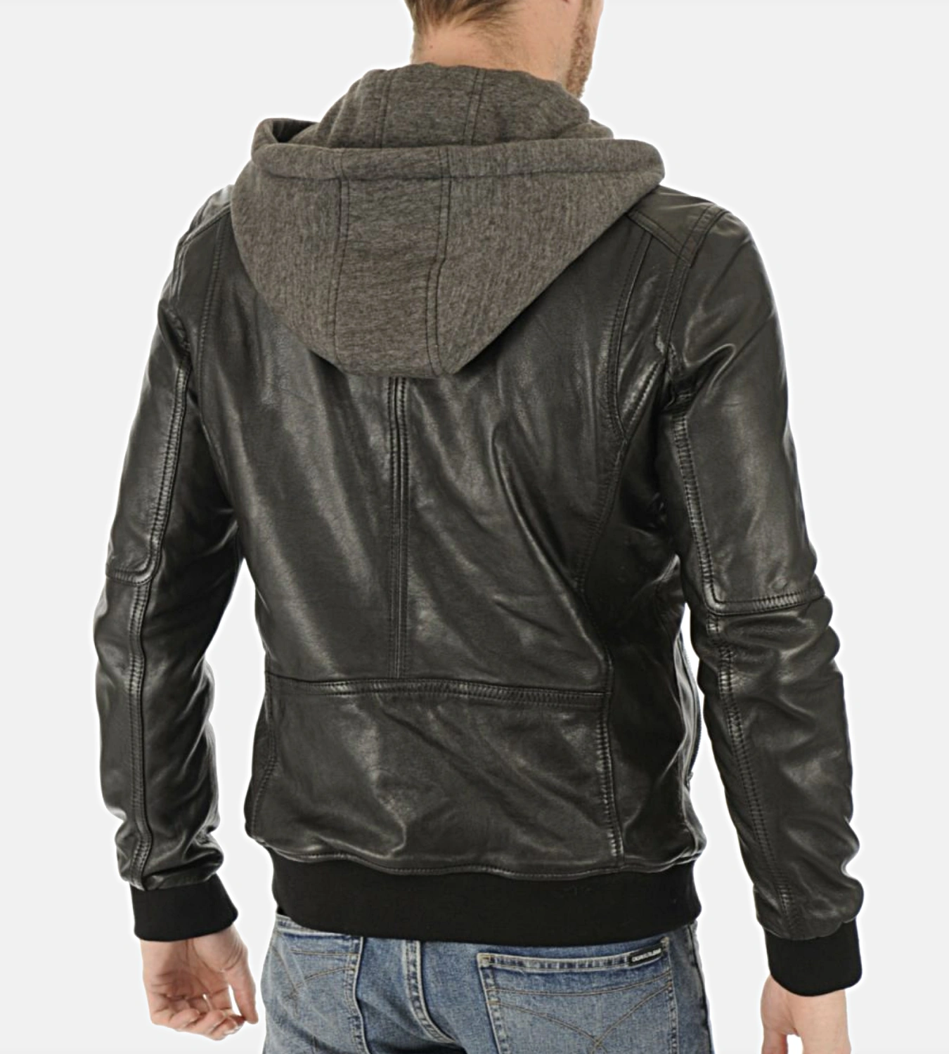 Men Lambskin Leather Black Jimmy Hooded Jacket Men Lambskin Leather Black Jimmy Hooded Jacket