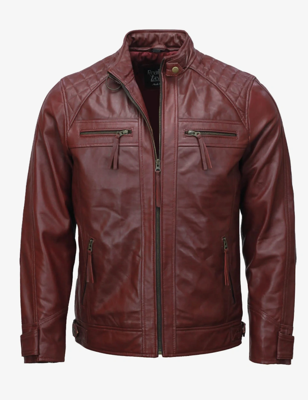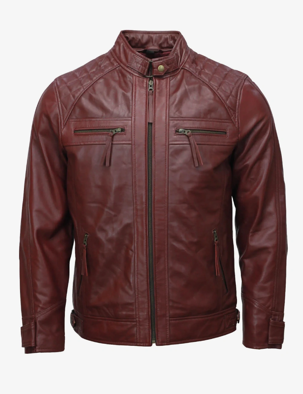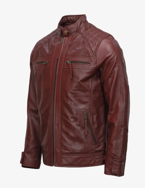 Mens Cafe Racer Crimson Leather Jacket