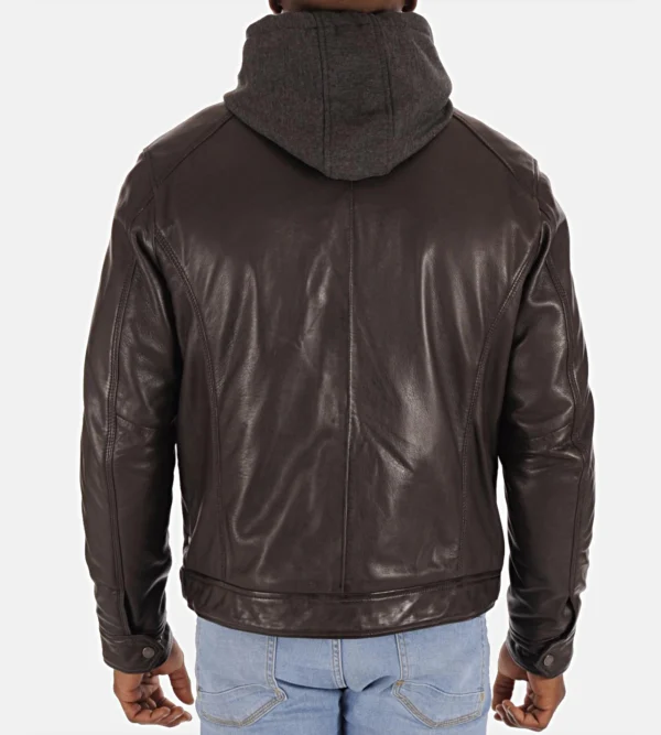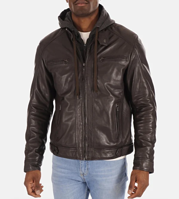 Mens Dark Brown Hood Lambskin Leather Jacket Mens Dark Brown Hood Lambskin Leather Jacket