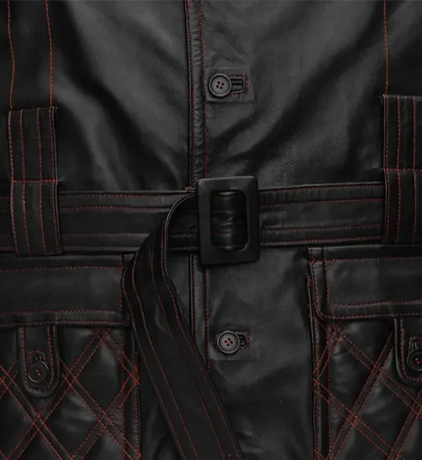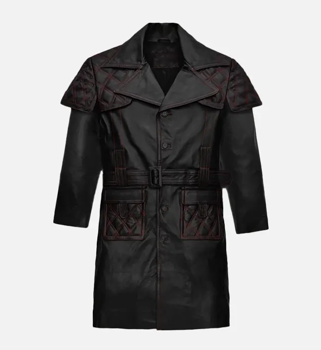 Mens Samurai Style Leather Black Coat