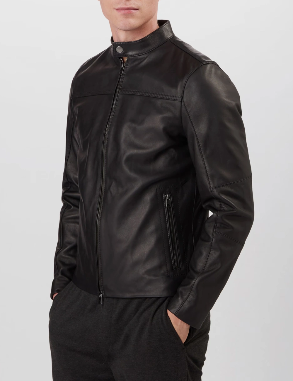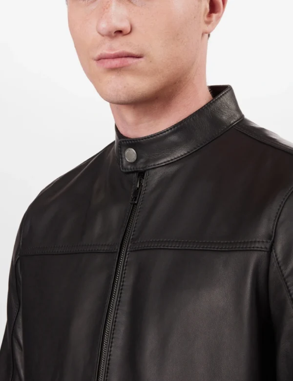 Mens Urban Noir Cafe Racer Black Leather Jacket