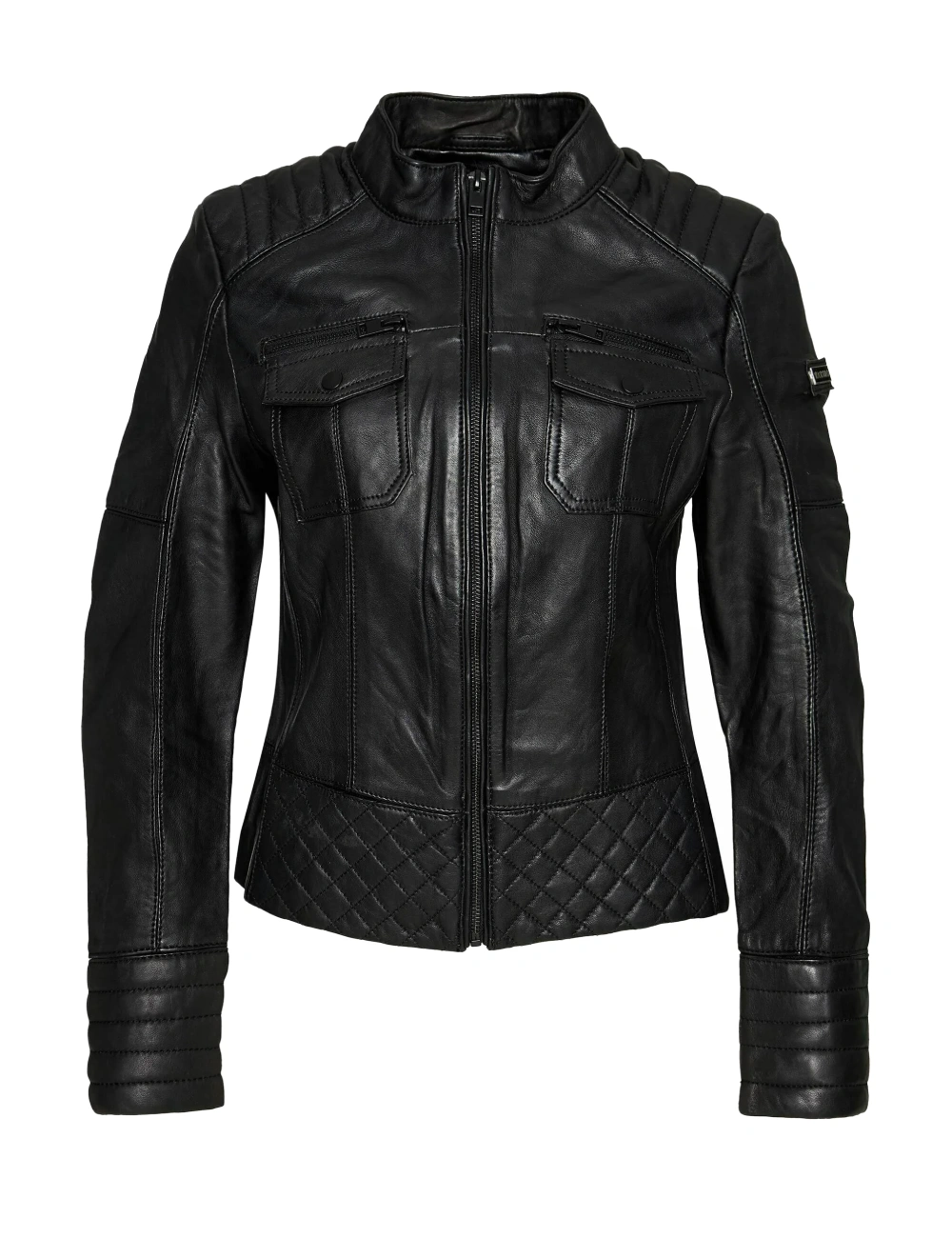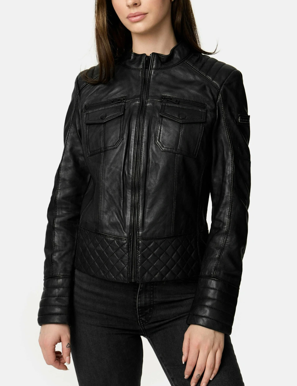 Women Black Cafe Racer Leather Modern Jacket Women Black Cafe Racer Leather Modern Jacket