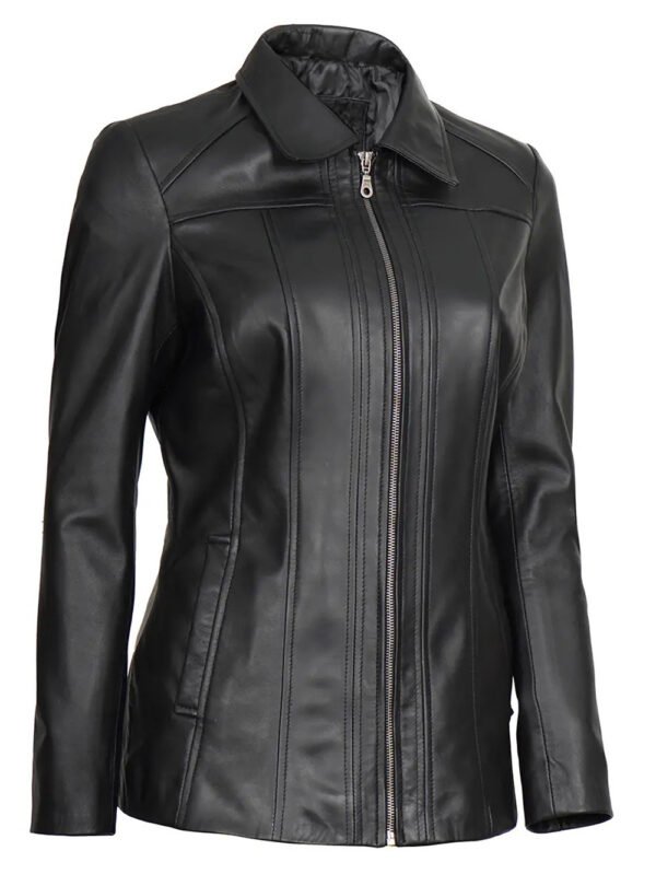 Women Marsha Black Leather Car Coat